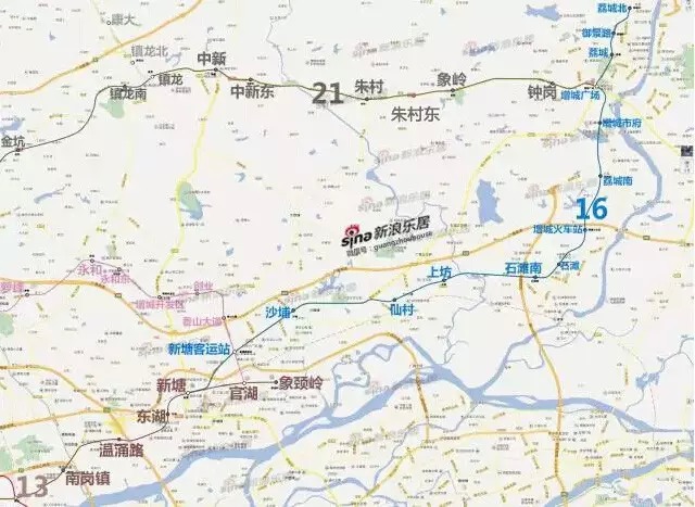 16号线站点:新塘-新塘北-沙浦-仙村-石滩-广本研究中心-鹤咀-增城体育中心-增城广场-荔城